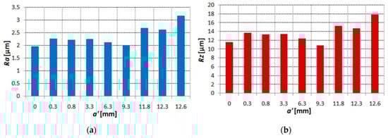 The surface roughness parameter: (a) Ra as function of ; (b) Rz as function of .