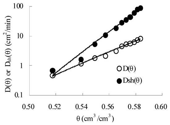 in which C is the solute concentration in the water, θ is the volume fraction of fluid within the soil, q is the volume flux density of the solution, x is the space coordinate, t is time, and Dsh is the longitudinal dispersion coefficient.