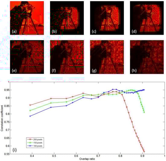 We then made a simulation to show how the overlap ratio can influence the image performance. In this simulation, the diameter of the probe aperture was 66 pixels, and the overlap ratio varied from 39% to 91%. We moved the probe apertures to 255 different positions to show how large the effective area can be scanned in a given time. Some typical reconstructed images are shown in Figure 7b–h.