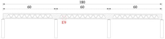 Layout of a steel–concrete composite continuous truss bridge (unit: m).