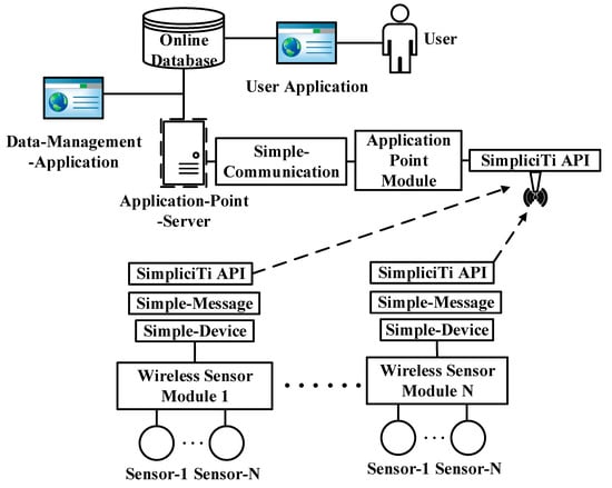 As an indispensable block in WSN systems, a software framework includes software components in Figure 2, such as Simple-Device, Simple-Message, Simple-Communication, Application-Point-Server, Data-Management-Application, and SimpliciTi Application Programming Interface (API). In this section, we will introduce and describe each of these software components in detail.