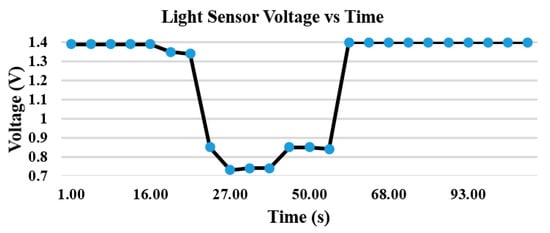 The recorded light sensor voltage level resultant from this fire hazard event.