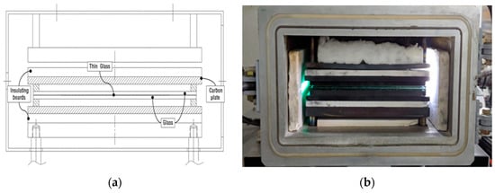 Using hydrogen gas torches in the edge sealing process resolves the problem of the thermal expansion coefficient mismatch. However, the resulting sealed edges sag, making them inappropriate for panel fabrications [,]. Therefore, this study used microwaves to resolve this problem. Microwave is a strong energy source that has many practical applications in both industrial and commercial fields. It possesses excellent reproducibility and helps reduce the processing time. Moreover, the uniform heating process improves the quality of the final product.