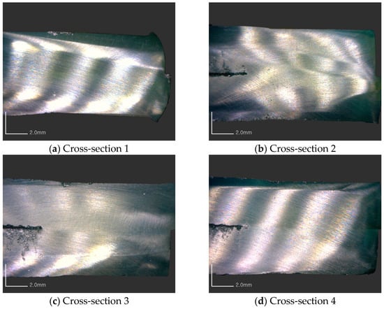 The sealed glass was cut through water jet processing and the sealed cross-section was observed using a digital microscope. Figure 11 shows the observation results, it was confirmed that all glass edges were completely sealed.