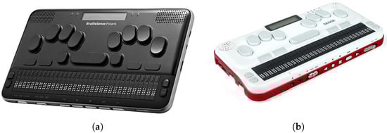 Well-known braille display devices: (a) BrailleSense Polaris; and (b) BrailleSense U2 [].