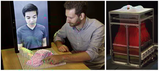 - Leithinger, D.; Follmer, S.; Olwal, A.; Ishii, H. Shape displays: Spatial interaction with dynamic physical form. IEEE Comput. Graph. Appl. 2015, 35, 5–11. [Google Scholar] [CrossRef] [PubMed]
