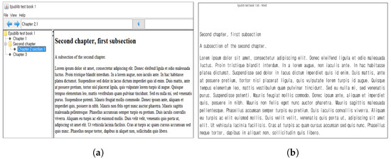 Sample Epublib contents within the java language platform: (a) EPUB viewer by Epublib; and (b) extracted text contents using Epublib.
