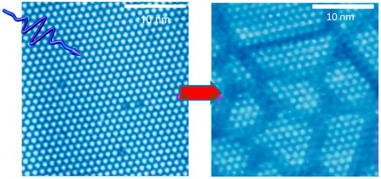 - Eichberger, M.; Schaefer, H.; Krumova, M.; Beyer, M.; Demsar, J.; Berger, H.; Moriena, G.; Sciaini, G.; Miller, R.J.D. Snapshots of cooperative atomic motions in the optical suppression of charge density waves. Nature 2010, 468, 799–802. [Google Scholar] [CrossRef] [PubMed]