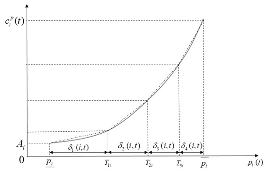 Piecewise linearization is widely used in the nonlinear curve of the power unit for the convenience to solve and accelerate its convergence, as shown in Figure 2.