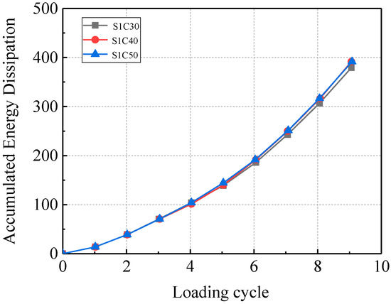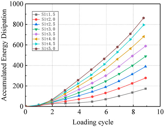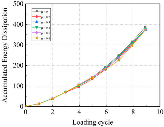 In the initial stage of the test loading, the counter-force and displacement were basically linear, the area of hysteresis loop was small, the stiffness of specimen was larger, and the energy consumption was less. At this time, the test piece was in the elastic stage, and the infill steel plate worked well with the fringe frame. As the test continued to load, some parts on the two main diagonal lines of the infill steel plate yielded, and the counter-force and displacement appeared non-linear. At this time, the specimen entered the elastoplastic stage, and the stiffness of the specimen decreased. The area of the hysteresis loop increased and was relatively full, and the energy dissipation performance of the specimen gradually increased. Specimen entered the yield stage after loading continually. The residual strain of the infill steel plate kept increasing under the action of main tensile stress. The plasticity had been developed to a greater extent leading to significant stiffness degradation of the specimen. The hysteresis loop appeared obvious “pinching” phenomenon, and its shape changed to an S shape. However, the area of hysteresis loop was larger, and the specimen still had good energy dissipation performance at this time. The phenomenon of “pinching” is an important characteristic of the hysteretic curve of beam-column joints [79], which results in the reduction of energy dissipation and bearing capacity. Many scholars have proposed different “pinching” models to simulate the mechanical response of structures under cyclic loading [80]. For example, the Pinching4 model in OpenSees is a user-defined model code developed by Mitra [81]. The mechanical curve defined by multiple line segments can take into account the gradual increase of stiffness and strength and pinching effect in hysteretic loading.