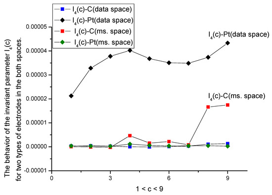 - The behavior of the value of the invariant I4(c) (derived from Equation (A17))) is also important and should be taken into account, as well.