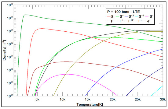 Atomic species for SF6 plasma densities at P = 100 bar − LTE.