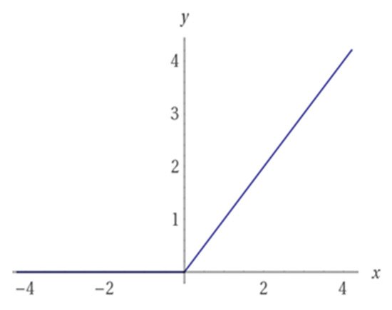 Although the connection between neurons in CNN are a local connection type, similar to ANN, the output of a neuron in CNN is calculated by a nonlinear activation function. Based on the advantage of Relu (Rectified linear unit) activation function (Figure 2) in terms of the high performance, fast learning, and a simple structure it is preferred to logistic sigmoid and hyperbolic tangent functions. The formula of the Relu function and its derivative are shown by Equations (6) and (7). For z ≤ 0, the gradient of the Relu function is 0; otherwise, the gradient of Relu is 1 [33].