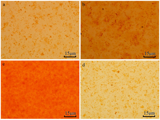 The floc size distribution can tell us the percentages of different floc sizes (shown in Figure 4), and the removal efficiency is commonly used to estimate the coagulation performance. In order to gain further insight into the floc and sediment properties, image analysis was used to predict floc characteristics by IX71 digital photomicrography. In Figure 5, the average size of flocs in different reactors is clearly indicated. The floc formation and growth processes were carried out in the rapid mixer and no more aggregation occurred due to the strong repulsion between positively charged particles of magnesium hydroxide in the flocculation basin. In the sedimentation tank, flocs aggregated to form relatively large particles. This is consistent with the findings of FSD value which are shown in Figure 4. As for Figure 5a,d, they clearly show that increasing flow caused a decrease of the average size in the rapid mixer. The average floc size of magnesium hydroxide-reactive orange is 8.06 and 7.25 μm. This is also consistent with the findings of a previous study [14].