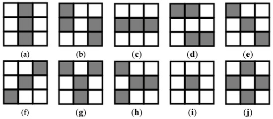 The different feature extraction modes. (a)Vertical Mode1; (b) Vertical Mode2; (c) Horizontal Mode1; (d) Horizontal Mode2; (e) Descending Mode; (f) Ascending Mode; (g) T Mode1; (h) T Mode2; (i) Center Mode1; (j) Center Mode2.