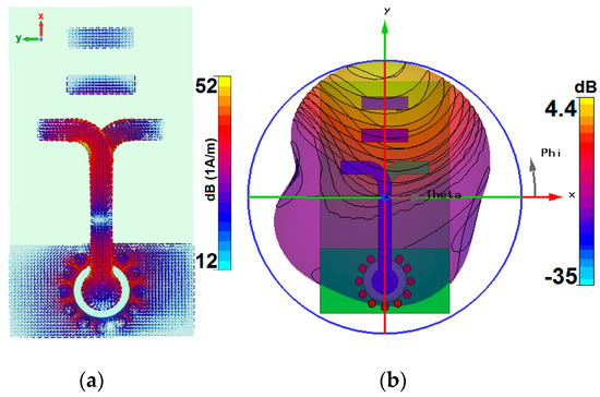 (a) Current densities and (b) 3D radiation pattern at 26 GHz.