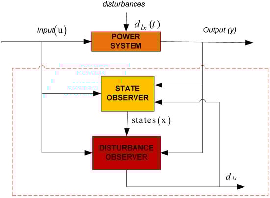 The disturbance observer can be used to accurately estimate the disturbance magnitude. Figure 2 shows the structure of the proposed set up for disturbance estimation. For a disturbance which occurs at any time (t) in a power system. The input and the states of the system obtained via a state observer are required to estimate the disturbance magnitude. The design of both the power system state observer and the disturbance observer are described in what follows.