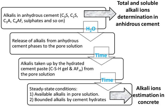 8], it is assumed that all of the water-soluble alkalis in cement are alkali cations that are present as sulfates (