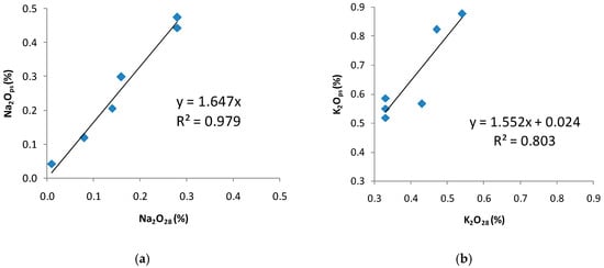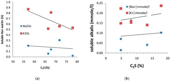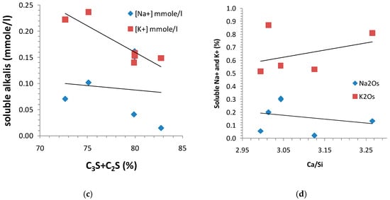 2 = 0.98); whereas in the case of potassium, this was less evident. From the analysis water-solubility data for alkalis, it can be concluded that sodium was significantly better bonded into the hydrated cement paste than potassium, as reported in the literature [