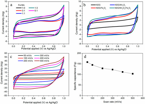 - Li, J.; Chen, Y.; Wu, Q.; Xu, H. Synthesis and electrochemical properties of Fe3O4/MnO2/RGOs sandwich-like nano-superstructures. J. Alloy. Compd. 2017, 693, 373–380. [Google Scholar] [CrossRef]