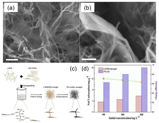 - Luo, G.; Wang, Y.; Gao, L.; Zhang, D.; Lin, T. Graphene bonded carbon nanofiber aerogels with high capacitive deionization capability. Electrochim. Acta 2018, 260, 656–663. [Google Scholar] [CrossRef]