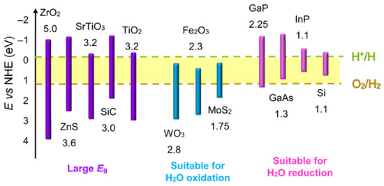 - Fujishima, A.; Honda, K. Electrochemical photolysis of water at a semiconductor electrode. Nature 1972, 238, 37–38. [Google Scholar] [CrossRef]