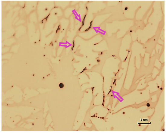 Regarding the σ-phase, in the FR weld, none of the weld passes experienced reheating in the critical temperature ranges, expect for Weld Pass 7, which was exposed for 5 s. However, some locations of the σ-phase were found in Weld Passes 1–6 (Figure 13).