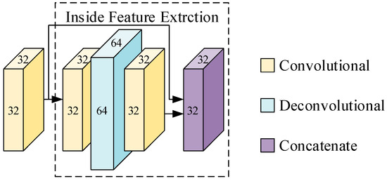 Inside feature extraction (IFE) process. The feature map will be enlarged first (32 × 32 to 64 × 64) and then reduced (64 × 64 to 32 × 32).