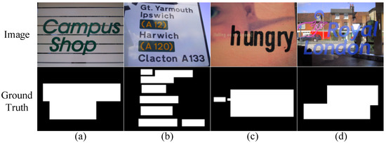 - Zhang, Z.; Zhang, C.; Shen, W.; Yao, C.; Liu, W.; Bai, X. Multi-oriented text detection with fully convolutional networks. In Proceedings of the IEEE Conference on Computer Vision and Pattern Recognition, Las Vegas, NV, USA, 27–30 June 2016; IEEE: Piscataway, NJ, USA, 2016. [Google Scholar]
