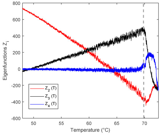 Temperature behavior of three of the first four eigenfunctions for a droplet of stearic acid (SA).
