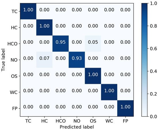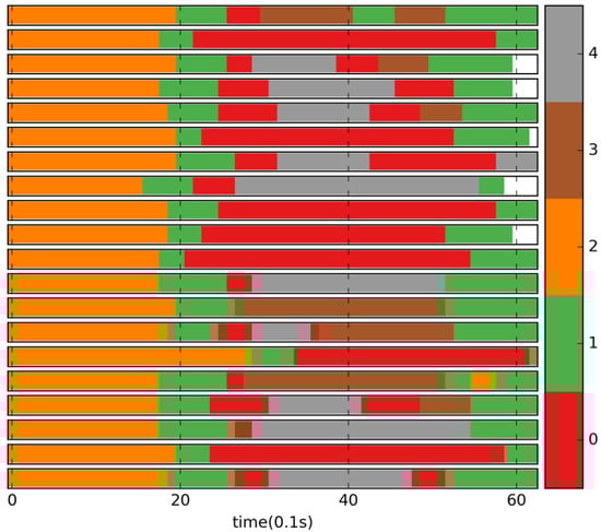 With regard to anomaly classification, anomalies usually occur from various sources such as sensing errors, control failures, or environmental changes []. If a robot identifies the type, it may be beneficial to prevent or at least recover from the anomalous situation. In our proposed classification method, we trained the sHDP-VAR-HMM model for each anomaly type separately. To address this, Natraj Raman et al. [] had proposed a signal discriminative HDP-HMM for all classes, albeit with an extra level that is class specific. Thus, an interesting future direction consists of investigating a multilevel sHDP-VAR-HMM for all classes for multiclass classification and the extensions of the observation model by using higher-order auto-regressive Gaussian models.