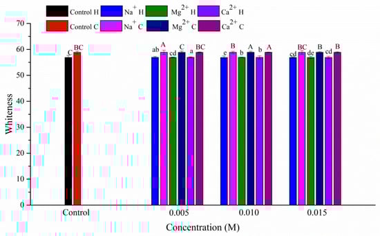 - Pan, T.; Guo, H.Y.; Li, Y.; Song, J.H.; Ren, F.Z. The effects of calcium chloride on the gel properties of porcine myosin-κ-carrageenan mixtures. Food Hydrocoll. 2017, 63, 467–477. [Google Scholar] [CrossRef]