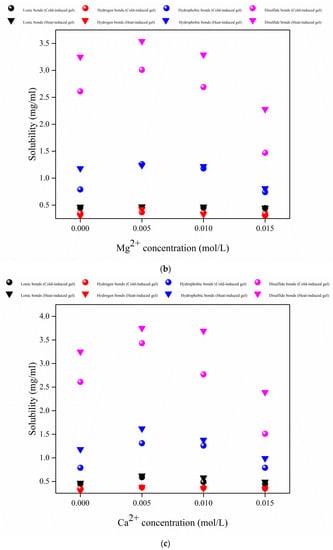 - Lu, X.; Lu, Z.; Yin, L.; Cheng, Y.; Li, L. Effect of preheating temperature and calcium ions on the properties of cold-set soybean protein gel. Food Res. Int. 2010, 43, 1673–1683. [Google Scholar] [CrossRef]
