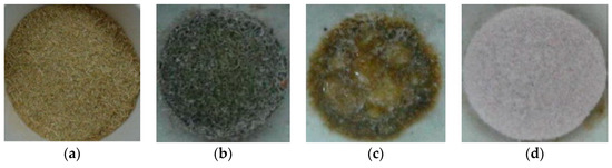 Rice straw: (a) before combustion; (b) untreated RS combusted at 700–800 °C; (c) untreated RS combusted at 900–1000 °C; (d) washed RS combusted at 900–1000 °C [198]. Reprinted from Waste Management, 33, N. Said, T. Bishara, A. García-Maraver, M. Zamorano, Effect of water washing on the thermal behavior of rice straw, 2250–2256, Copyright (2013), with permission from Elsevier.