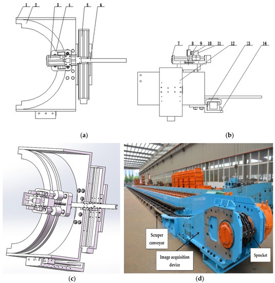 A scraper conveyor is the primary production and transportation equipment in a fully mechanized mining face [1]. In modern coal mining, the conveyor transports coal and provides hydraulic support and a walking track for the shearer. Therefore, its reliability directly affects the safety and production efficiency of modern coal mines. Sprockets are the core components of the chain drive system, which is the most important subsystem in the scraper conveyor [2]. Sprocket’s performance is directly related to the transport performance and service life of the scraper conveyor [3]. Sprockets contact chains directly; consequently, friction causes wear and excessive wear is the main form of sprocket failure and the main cause of scraper conveyor failure [4]. The sprocket conveyor chain may jump when it engages with the excessively worn sprocket; worn sprocket teeth may break, which affects the safe and efficient production of the coal mine, therefore, sprocket teeth wear analysis is required. Conventional wear measurement methods for scraper conveyor sprocket teeth include a weighing method, water volume measurement method, ANSYS analysis method [5] and wear monitoring [6]. Wang et al. [7] discussed the wear condition of a driving sprocket and the influence of wear on the sliding distance by taking the sliding speed and sliding distance of the meshing process as the index. Wang et al. [8] also analyzed the relationship between the deformation of a ring chain and driving sprocket wear by combining numerical analysis with experiments. However, these methods are not only tedious and time-consuming, they are also not sufficiently accurate or efficient.