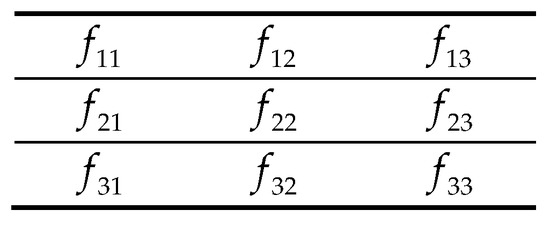 In the 3 × 3 filter evaluation window, the grey value of pixel centre point (x, y) is f(x, y),and the pixel points in the centre pixel and its neighbourhood are represented as f11, f12, f13, f21, f22, f23, f31, f32 and f33, as shown in Figure 8.