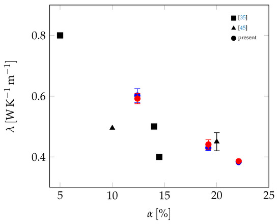 - the thermal conductivity is searched for in [31,32,33,34,35,36,37,38,39,40,41,42,43,44,45,46] using either hot wire [31,45], hot plate [32,34,35,36,39,42,43,44,46], or laser flash [33,40] techniques.Let us mention here that the thermal contact resistances and their influence on the measured conductivity are rarely taken into account.
