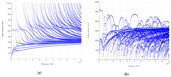 (a) Phase velocity; and (b) group velocity dispersion curves.