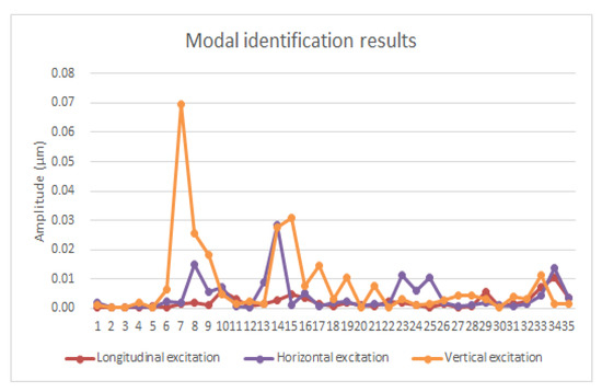As shown in Figure 12, the highest amplitude for the selected mode is that of vertical excitation. Therefore, vertical excitation was selected.
