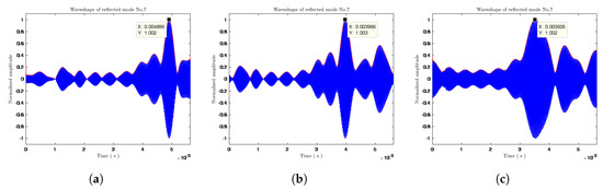 The reflection waveforms of mode No. 7 at a distance from the excitation point of: (a) 1.5 m; (b) 4.5 m; and (c) 6 m.