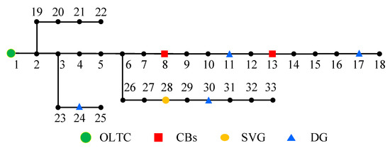 Topology of 33-bus distribution network.