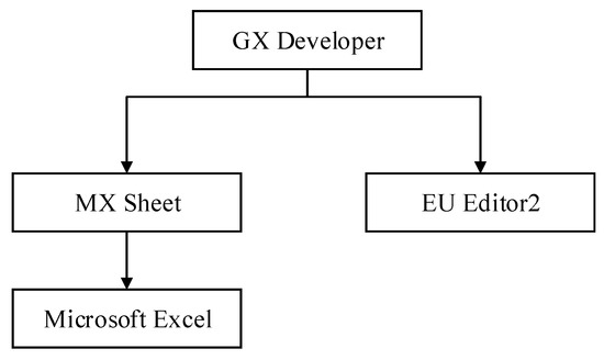 In this research, the Mitsubishi GX developer software was used for editing PLC control program. Furthermore, the schematic design for the human-machine interface was carried out by Shihlin Electric’s EU Editor2 software for the purpose of instantly controlling or monitoring the environmental status of temperature and humidity. The wireless communication has adopted the Modbus serial communication protocol for connecting monitoring computers and Remote Terminal Unit (RTU) from the Supervisory Control And Data Acquisition (SCADA) system. As to the database for historical recording, the MX Sheet application software developed by Mitsubishi Corporation has been used, which can directly export the data to Microsoft Excel from PLC, so that the variations in the collected environmental data can be analyzed from Excel. The software architecture diagram is shown in Figure 4.