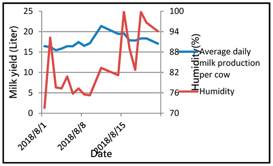 Humidity and average daily lactation yield per cow in moderate heat stress.
