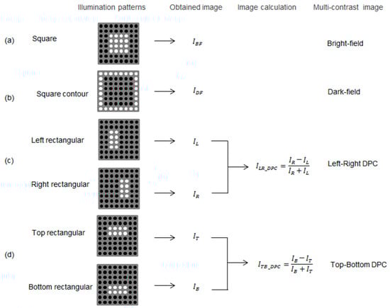 Similarly, the top–bottom DPC image, is definable using the illumination in Figure 3d, as