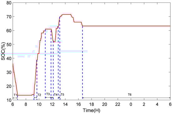 In this paper, a Li-ion battery is considered as the BESSs. Figure 8 shows the change of SOC in different states. The horizontal axis of Figure 8 is 24 h, indicating a full-day SOC operation. In order to make the BESSs have a charging and discharging margin and prevent over charge and over discharge, SOC should be controlled in 0.1 ≤ SOC(t) ≤ 0.9.