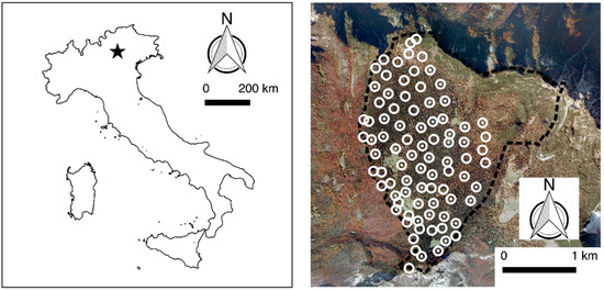 - Campagnaro, T.; Frate, L.; Carranza, M.L.; Sitzia, T. Multi-scale analysis of alpine landscapes with different intensities of abandonment reveals similar spatial pattern changes: Implications for habitat conservation. Ecol. Indic. 2017, 74, 147–159. [Google Scholar] [CrossRef]