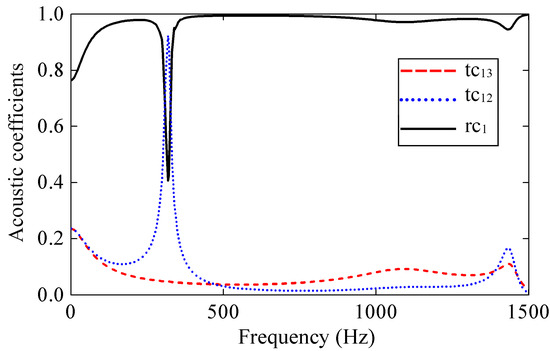 To obtain all the transmission and reflection coefficients, n FEM simulations are needed by imposing the incident pressure at one boundary and anechoic termination to other boundaries. At i-th simulation, the reflection coefficient rci and transmission coefficient tcij are produced. Equation (13) could be written more clearly in a matrix form: