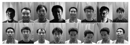 14. Belhumeur, P.N.; Hespanha, J.P.; Kriegman, D.J. Eigenfaces vs. fisherfaces: Recognition using class specific linear projection. IEEE Trans. Pattern Anal. Mach. Intell. 1997, 19, 711–720. [Google Scholar] [CrossRef]