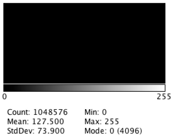 The XOR fractal has a flat histogram so that the convolution with these masks for image zooming maintains the original image histogram with minimal changes, as seen in Figure 2. Due to this property, the histogram is completely black.