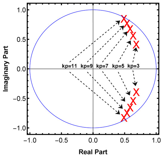 Hence, according to the condition of system stability, the roots of the equation should be inside the unit circle, which can be controlled by the proportion coefficient . At the same time, the inequality should also be ensured. Therefore, substitution of Equation (15) into this inequality leads to: